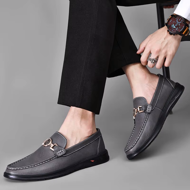 Crafted with 100% genuine leather and fitted with orthopedic cushion insoles for all day comfort, these loafers feature our Athens gold accent buckle fastened with triple-stitched leather straps for optimal foot support. Versatile for pairing with both casual and formal wear.